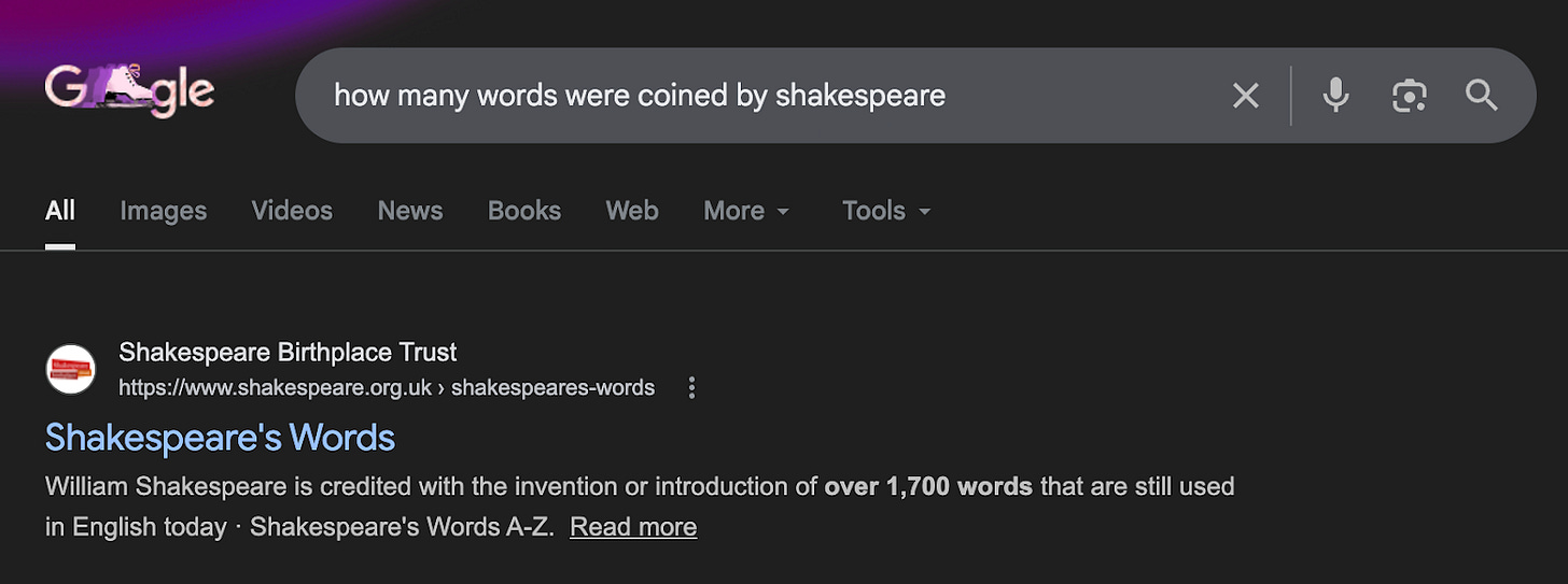 What made Shakespeare’s use of the English language special had nothing to do with coining words. But that’s a story for next time.