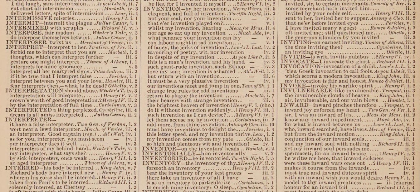 It was one of the great intellectual achievements of the Victorian age, or of any age. But it was inevitably uneven. Readers didn’t cover everything equally, and Shakespeare had an advantage that no other writer could match: a Complete Concordance, such as the one published in 1845 by Mary Cowden Clarke.